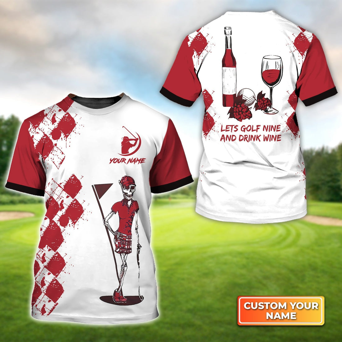 Golf Nine And Drink Wine, Personalized Name 3D Tshirt Gift For Golfer