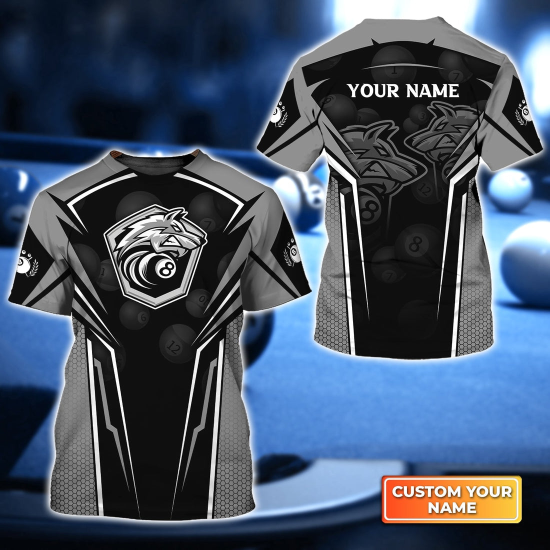 Grey Wolf Team Billiard Personalized Name 3D Tshirt Gift For Billiard Players