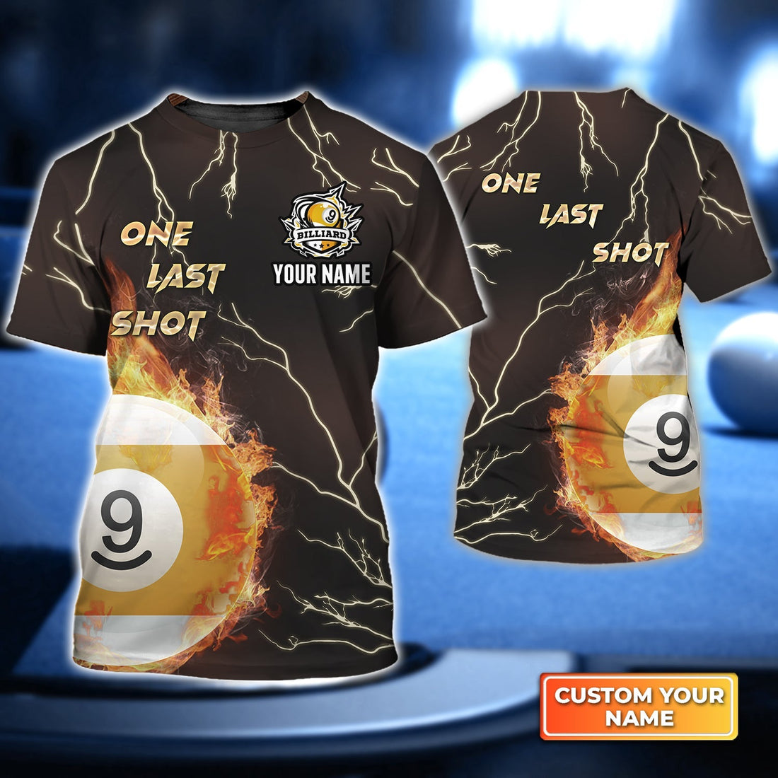 One Last Shot Billiard 9 Ball Fire Flame Personalized Name 3D Tshirt Gift For Billiard Players