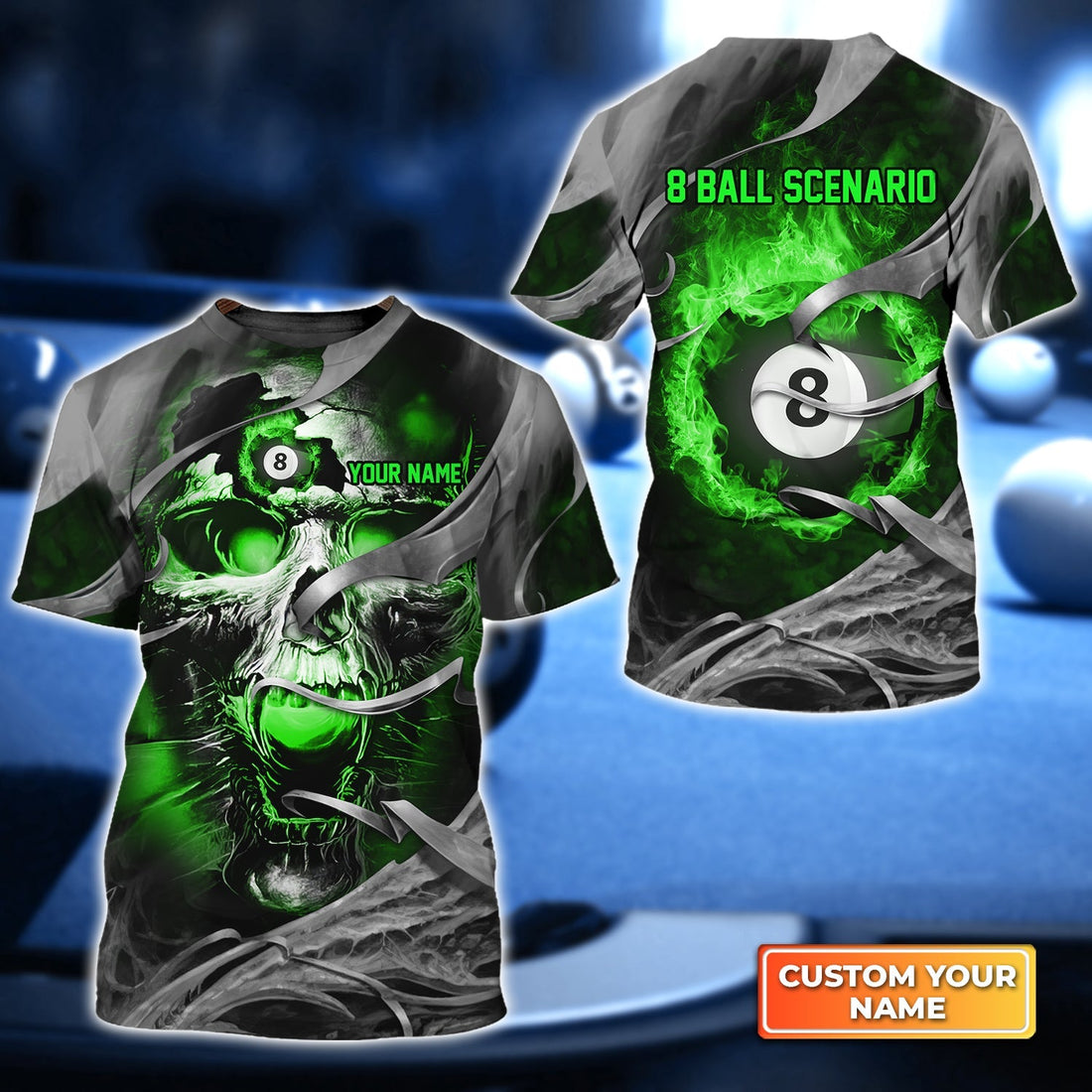 Scenario Green Skull Reaper Personalized Name 3D Tshirt Gift For Billiard Players