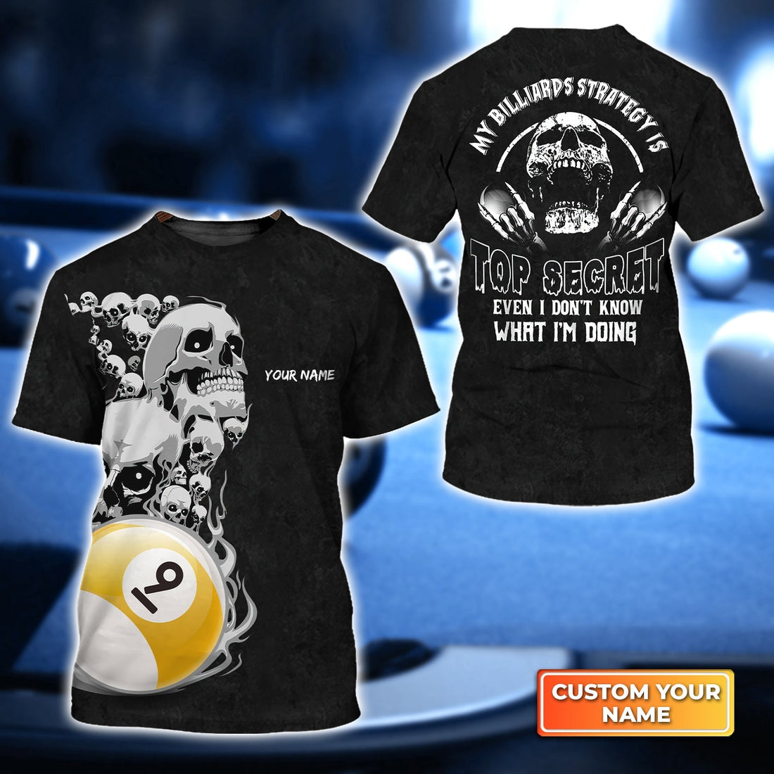 Billiard Pool 9 Ball Skull Sceret Personalized Name 3D Tshirt Gift For Billiard Players
