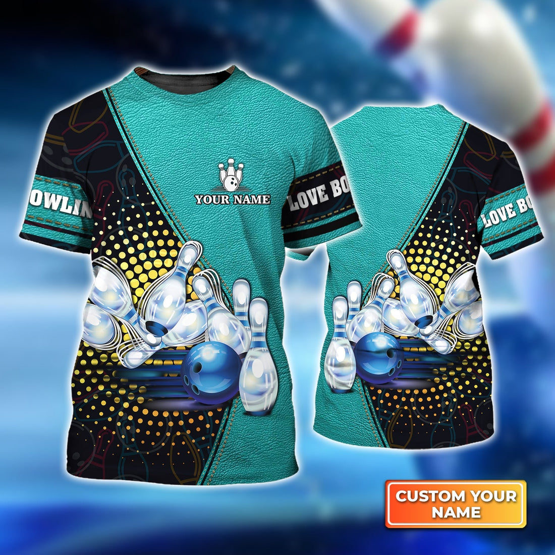 Bowling Colorful Balls and Pins Personalized Name 3D Tshirt