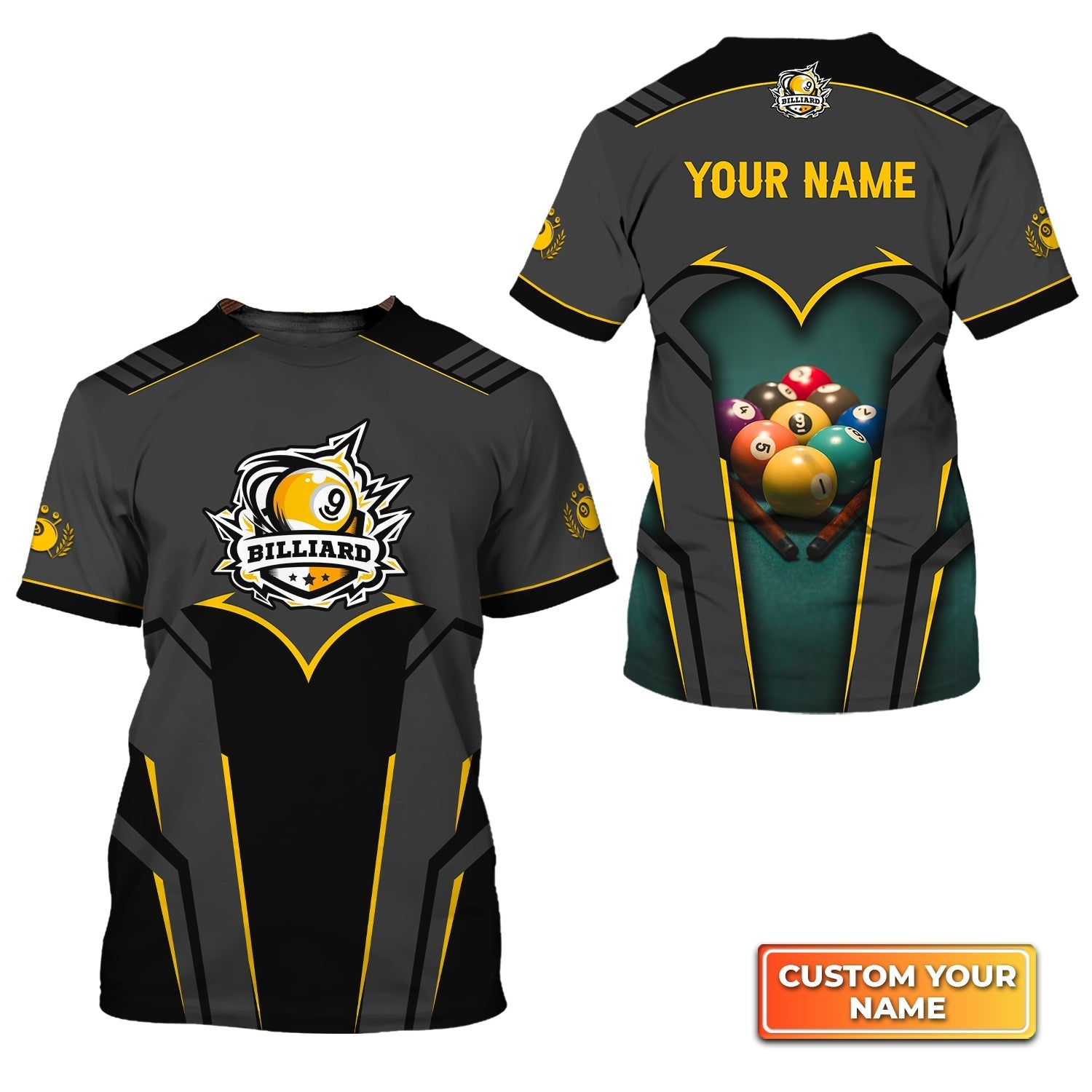 Billiard Pool 9 Ball Badge Personalized Name 3D Tshirt Gift For Billiard Players