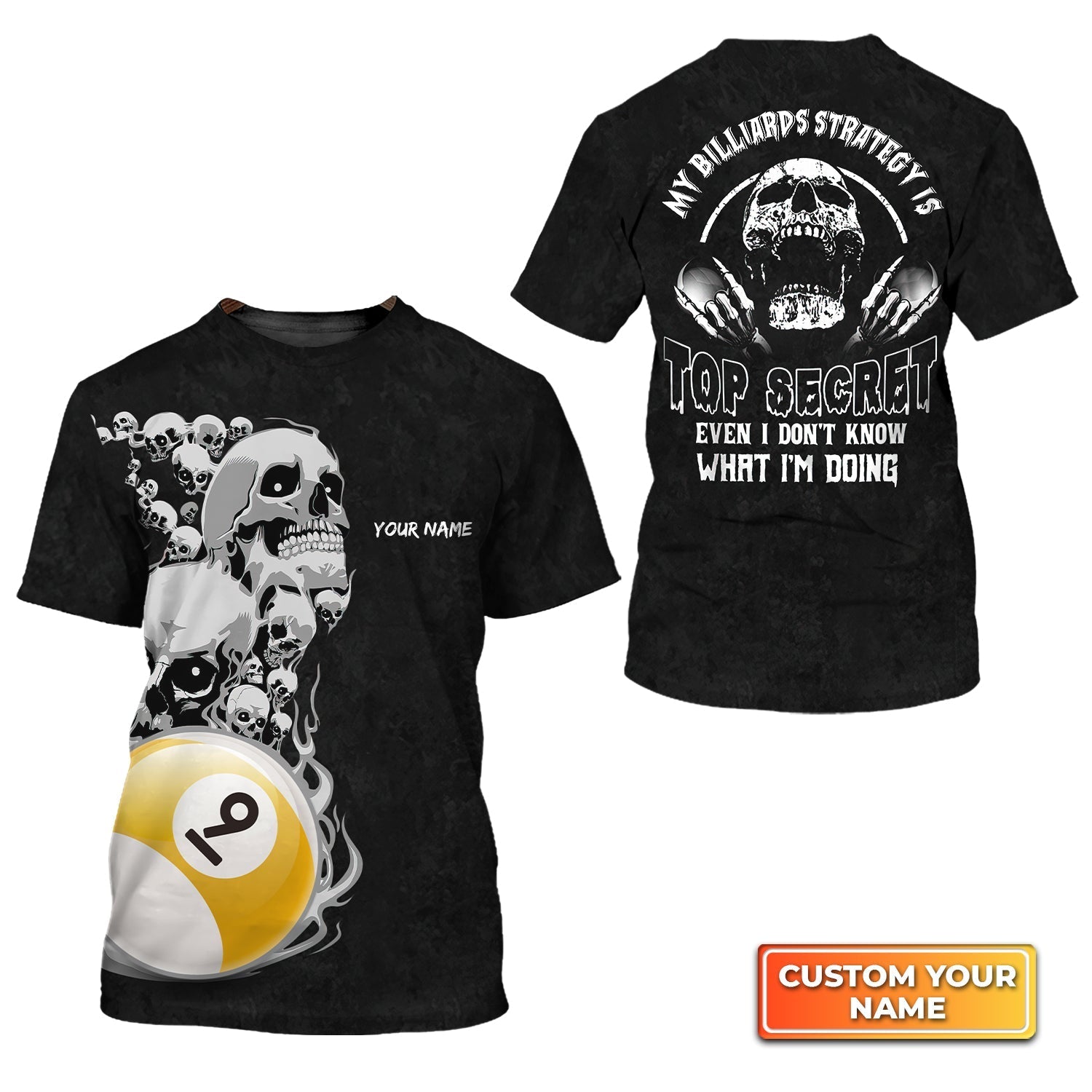 Billiard Pool 9 Ball Skull Sceret Personalized Name 3D Tshirt Gift For Billiard Players