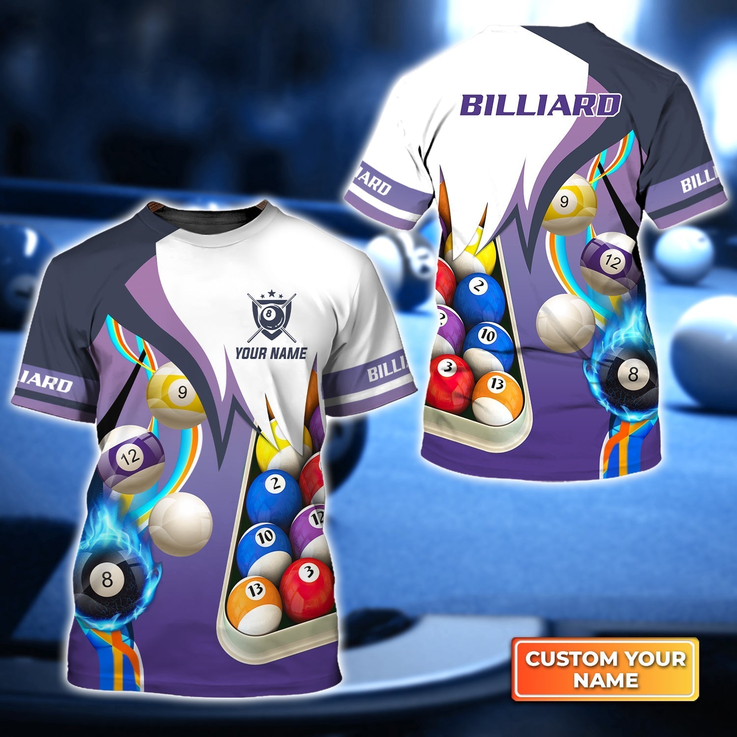 Billiard Purple Personalized Name 3D Tshirt Gift Billiard Players