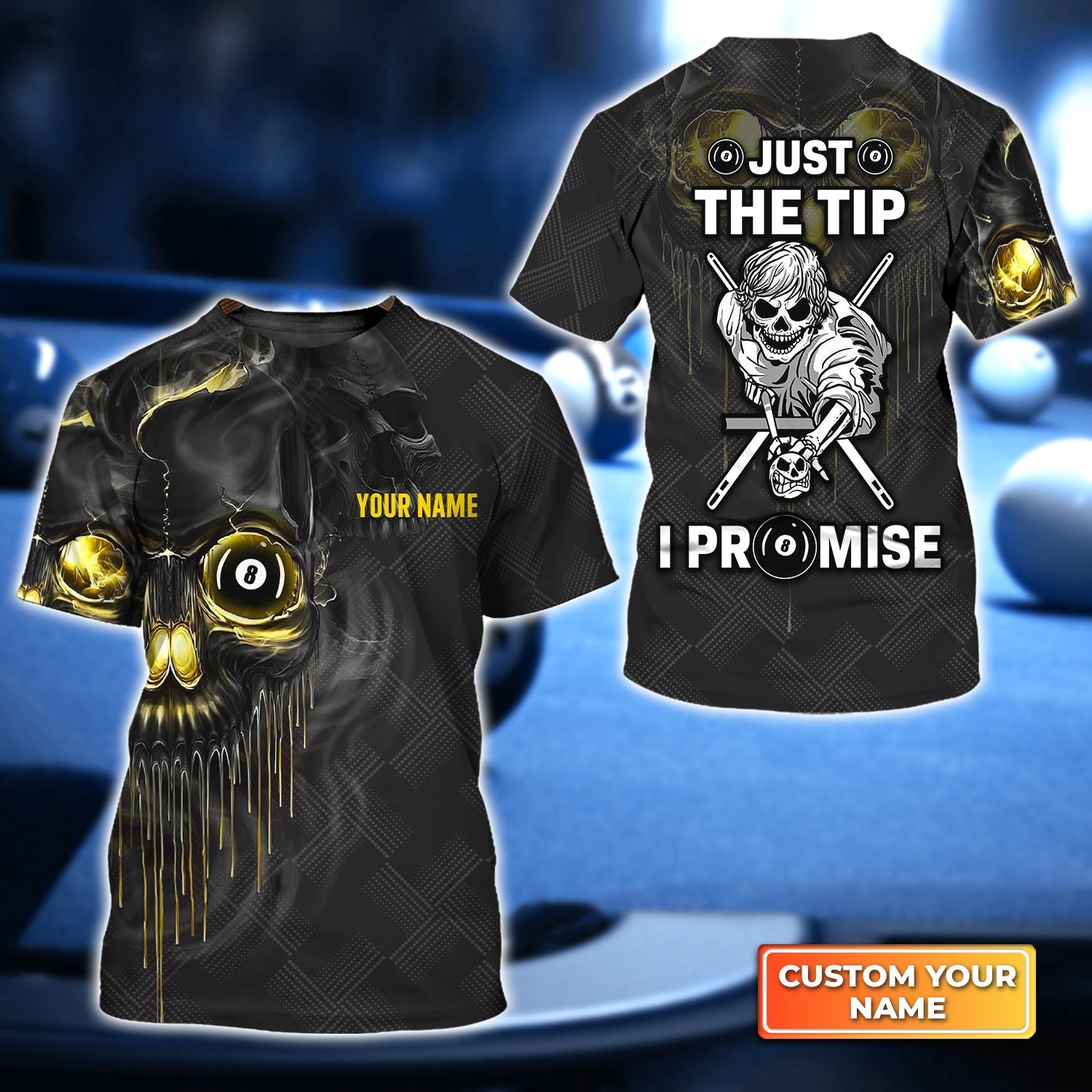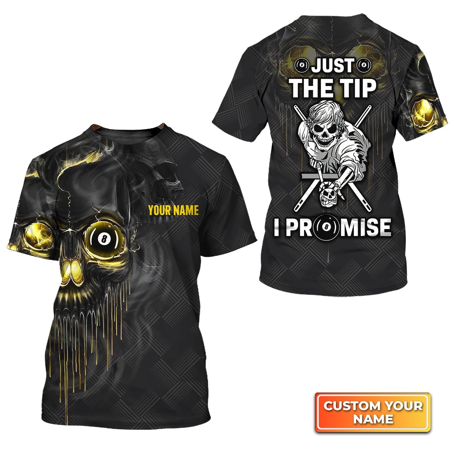 Black Skull Just The Tip I Promise Personalized Name 3D Tshirt Gift For Billiard Players