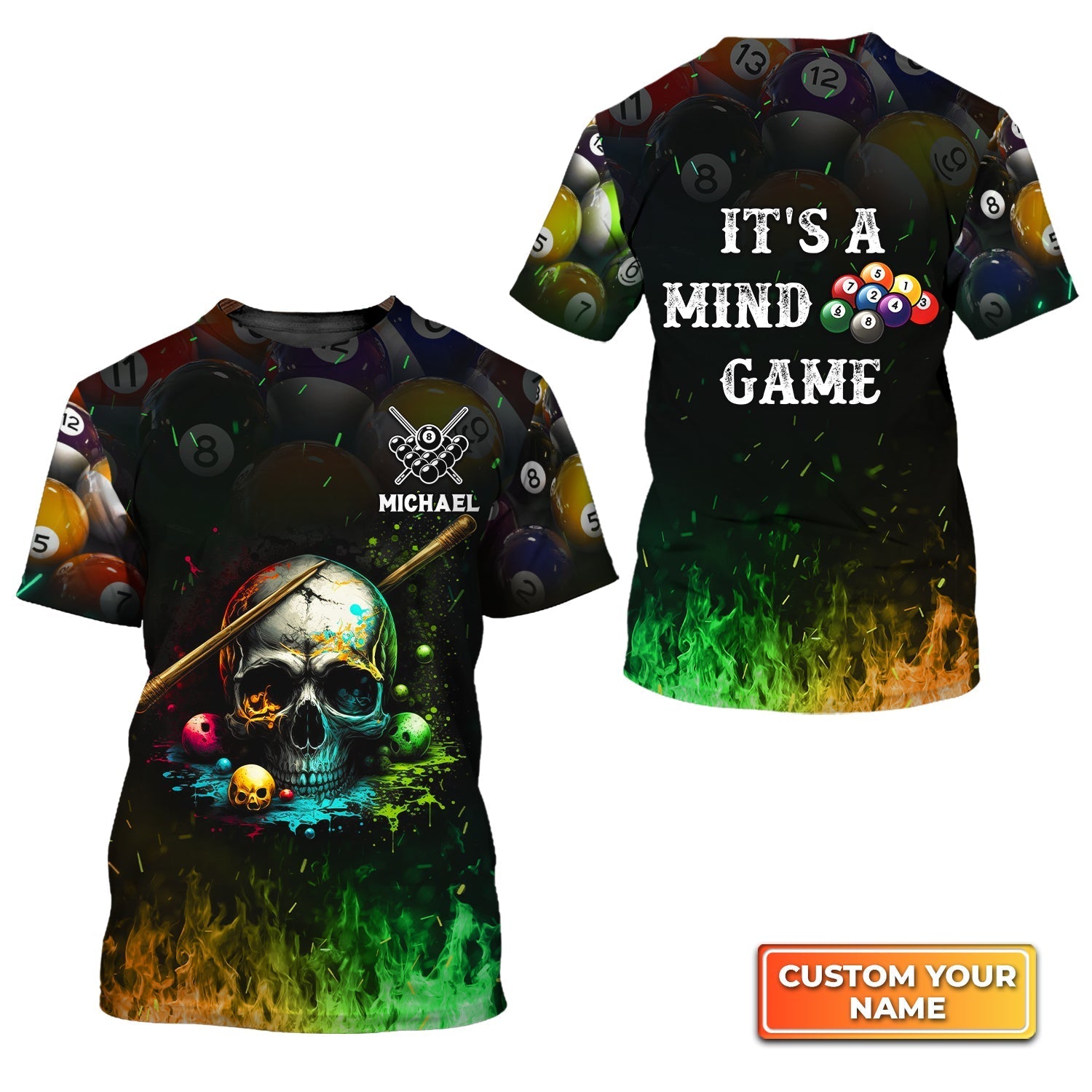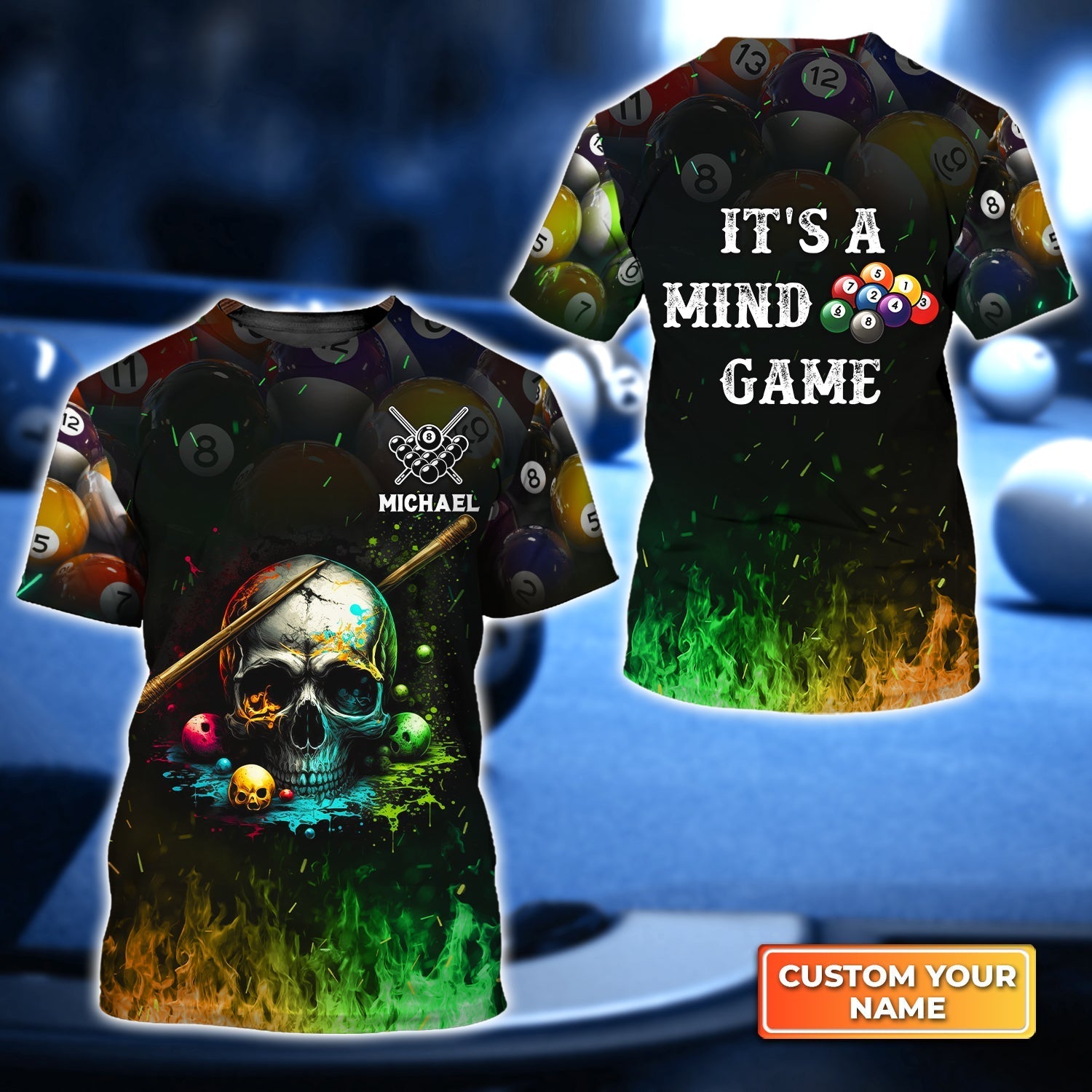 Dead Stroke Skull Billiard On Fire Personalized Name 3D Tshirt Gift Billiard Players