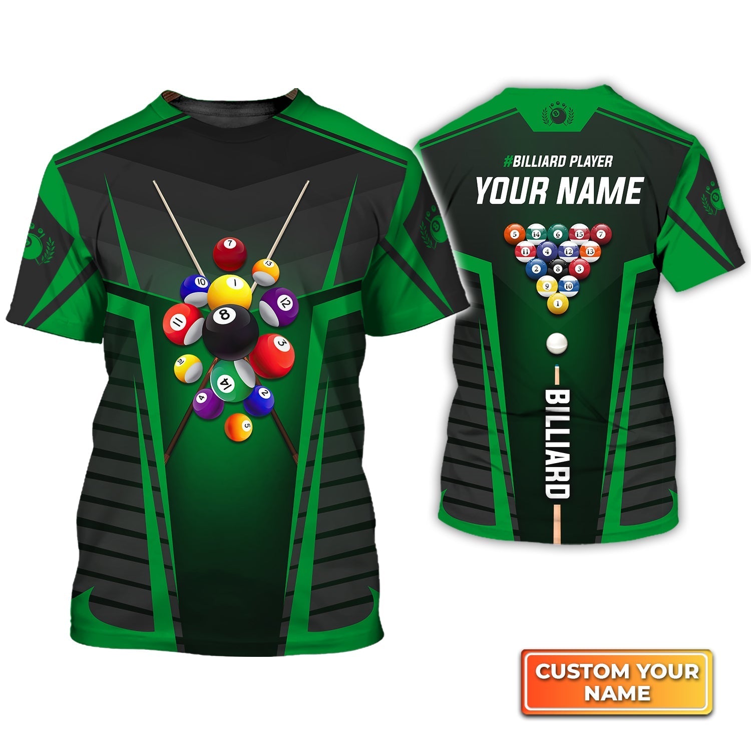 Green Billiard Balls Personalized Name 3D Tshirt Gift Billiard Players