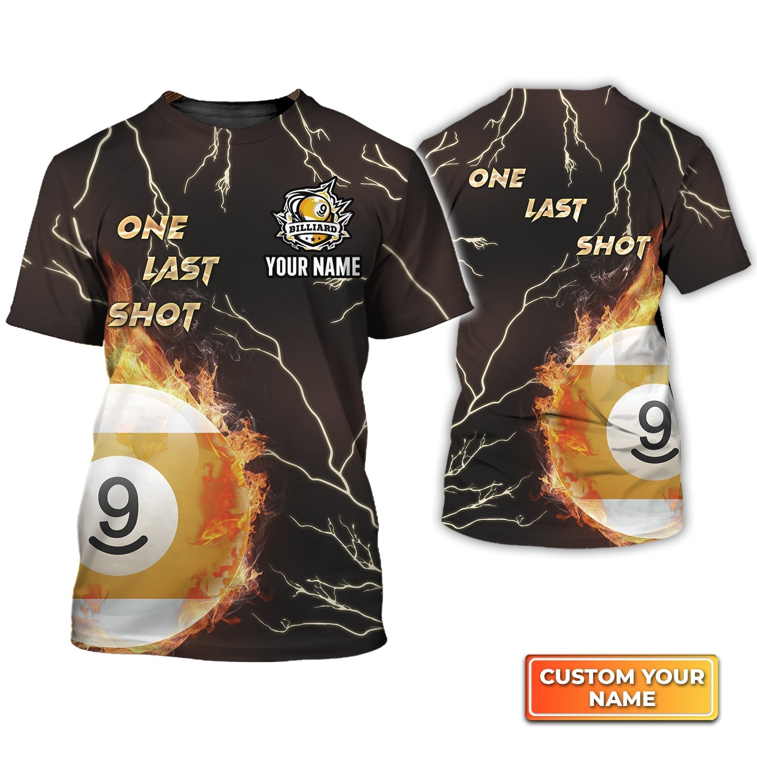 One Last Shot Billiard 9 Ball Fire Flame Personalized Name 3D Tshirt Gift For Billiard Players