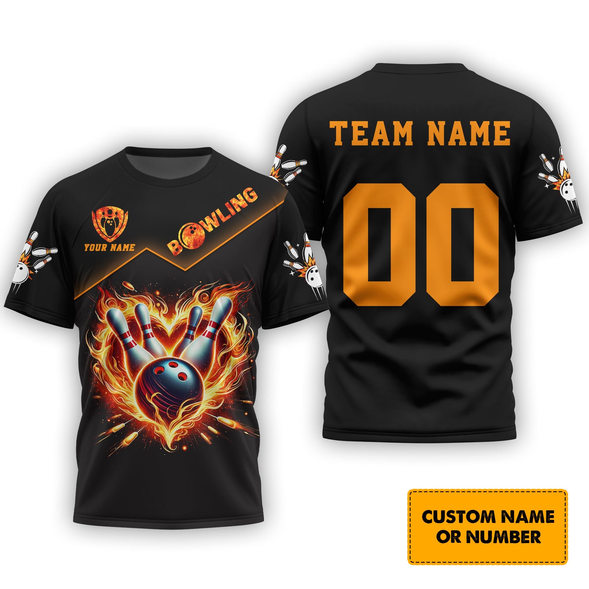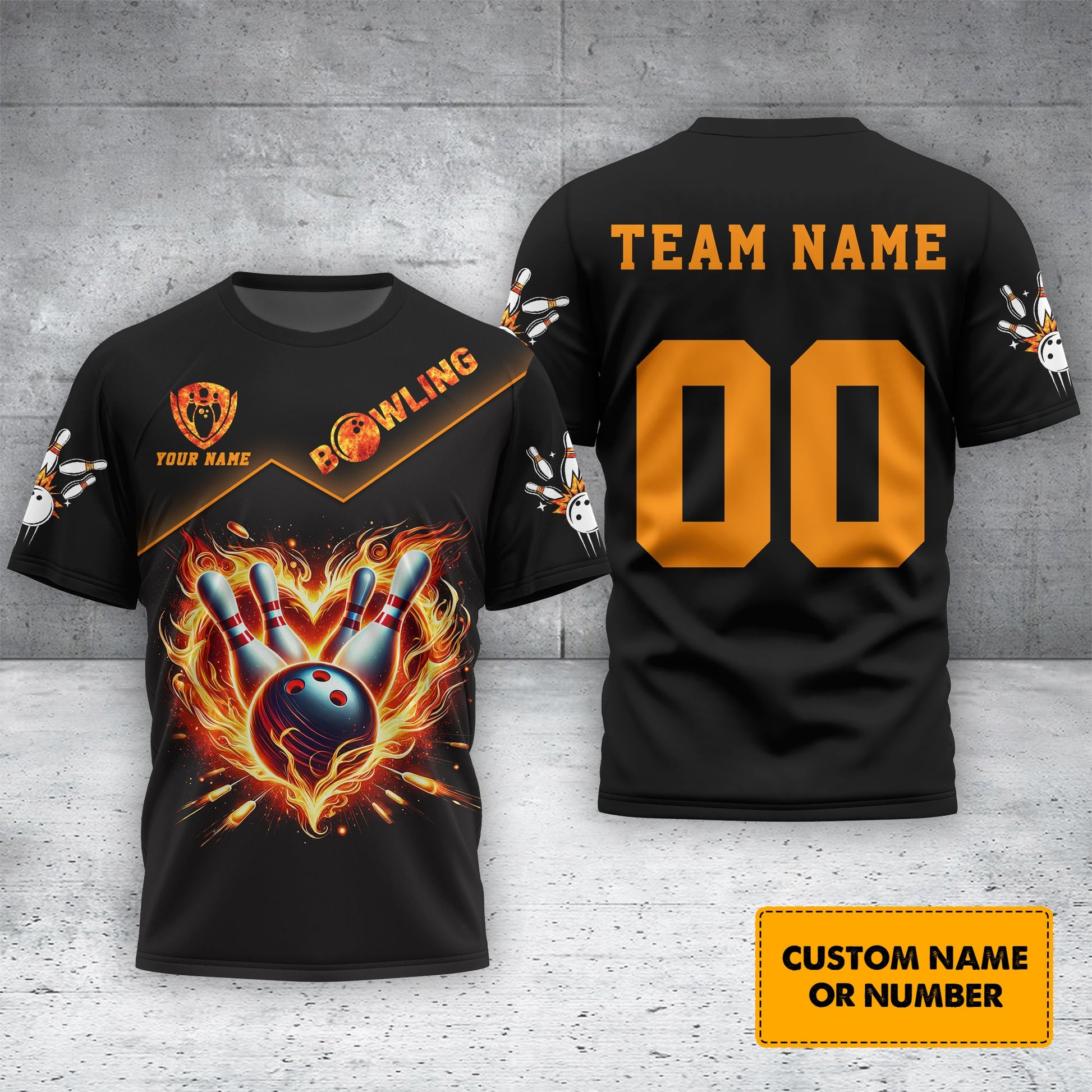 Turn heads on the lanes with this personalized bowling T-shirt featuring a dynamic flaming pins design! Perfect for tournaments, leagues, or casual games, this lightweight and breathable sportswear offers unmatched comfort and style. 🎳🔥 Add your name or team logo for a professional and standout look. A great gift for bowlers to elevate their game and style!