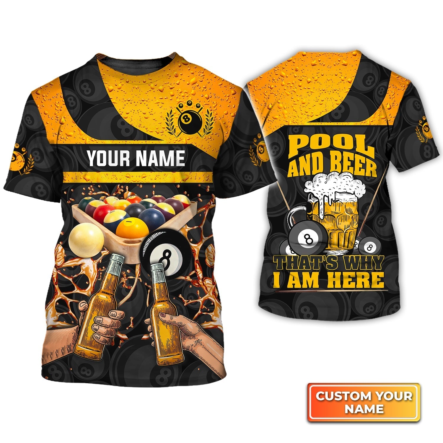 Pool And Beer That's Why I Am Here Personalized Name 3D Tshirt Gift Billiard Players