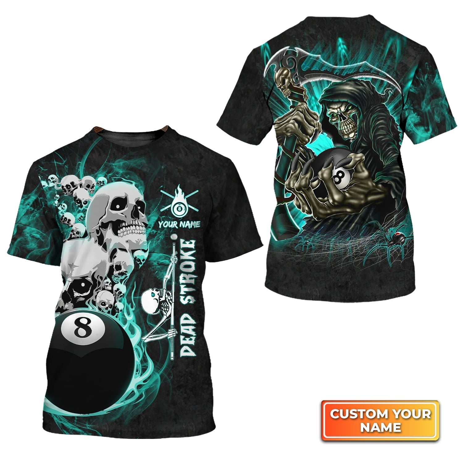 Skull Grim Reaper Billiards Personalized Name 3D Tshirt Gift For Billiard Players