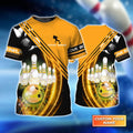 Yellow Bowling Ball In Motion And The Pins Personalized Name 3D Tshirt
